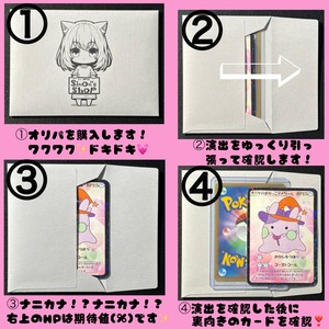 ・万が一、オリパに不備があった場合は、証拠動画の撮影をお願いしております。開封時の証拠動画がないとトラブル解決ができませんので、よろしくお願い致します。