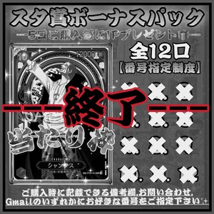 今回もスタ賞&最多購入者賞&ラストワン賞アリとなっております❣️